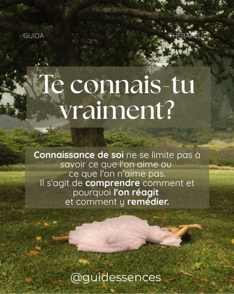 La connaissance de soi va bien au-delĂ de savoir ce que tu aimes ou non. Il sâagit de comprendre en profondeur comment tu rĂ©agis aux situations de la vie, pourquoi tu rĂ©agis de cette maniĂšre et ce que tu peux faire avec ces rĂ©actions.