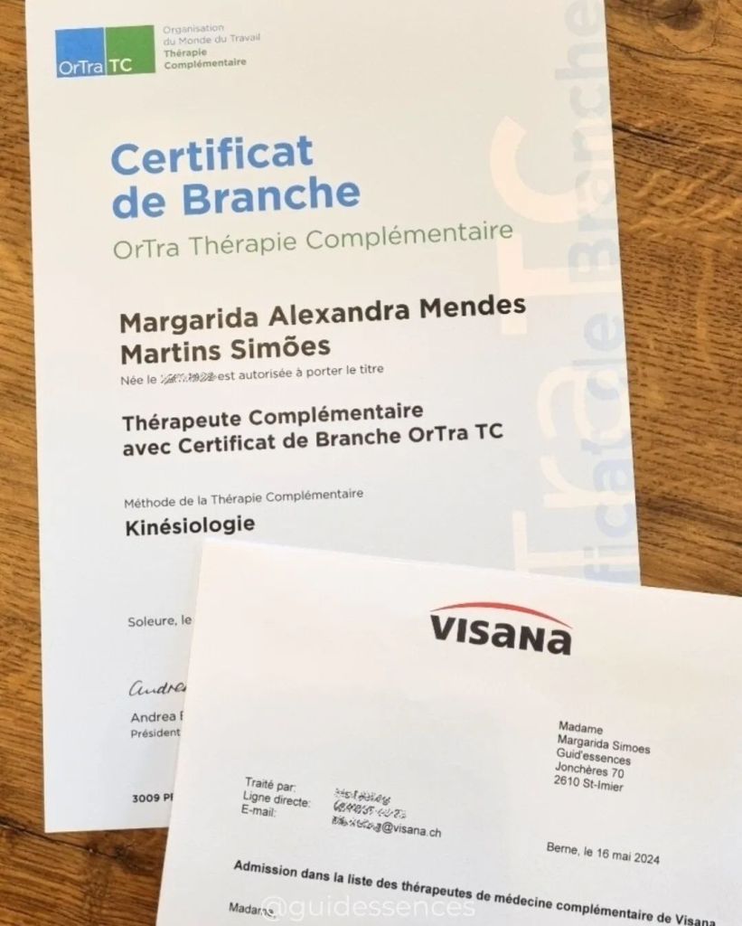 Et comme une nouvelle n’arrive jamais seule … en voici une DEUXIEME! Grâce à cette obtention de Certificat, dès aujourd’hui, mes consultations seront aussi remboursées par la VISANA ! Je sais que ça va faire le bonheur de plusieurs d’entre vous .